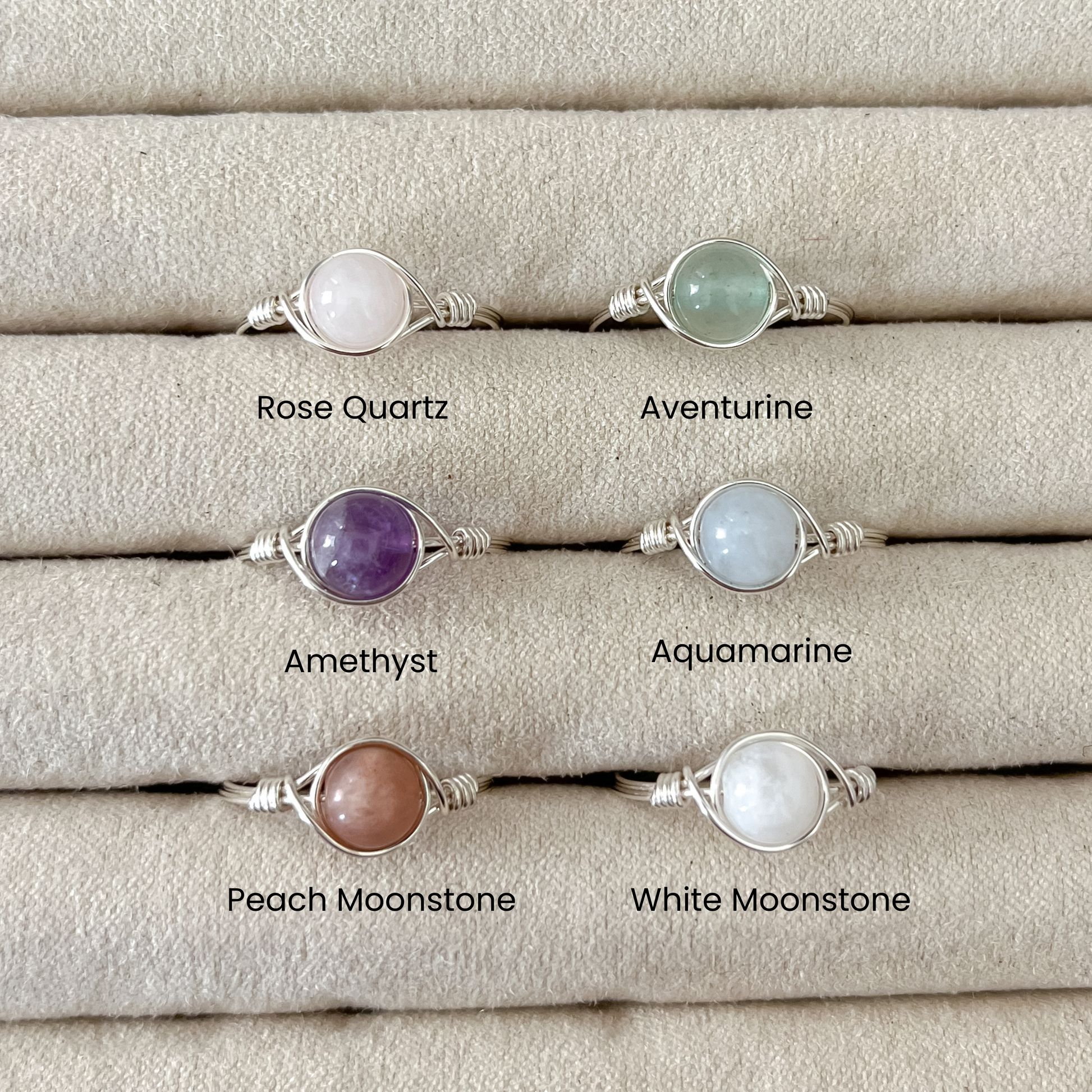 Elevate your style with our crystal bead rings, featuring a single gemstone elegantly wrapped in 925 sterling silver wire. Expertly crafted, these rings blend understated sophistication with timeless design, making them an exquisite addition to any elegant ensemble.