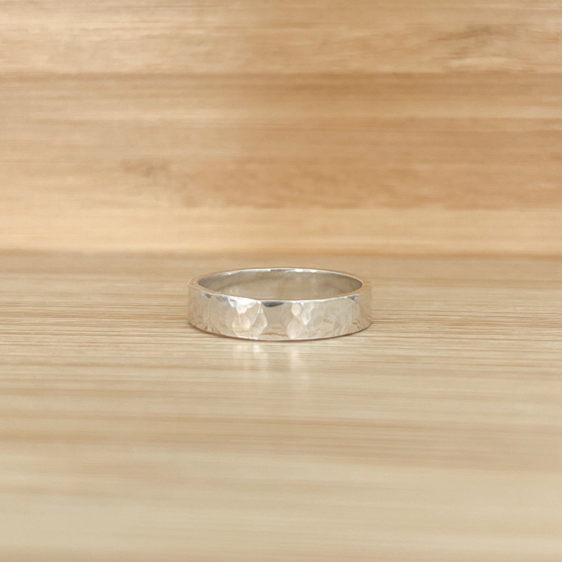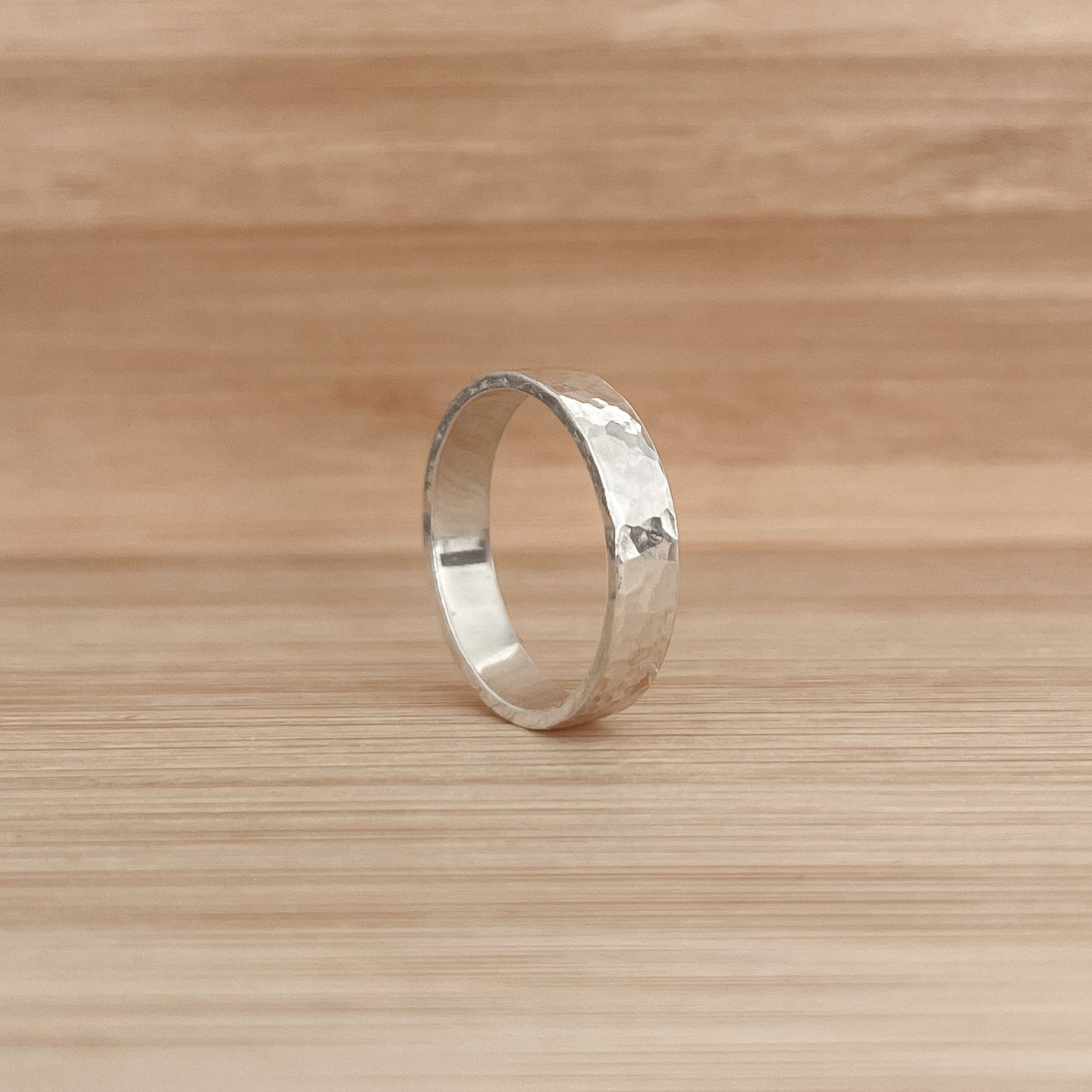 Add a touch of artisan charm to your style with this hammered textured band ring. Crafted from high-quality sterling silver, the hand-finished texture catches the light beautifully, creating a unique, organic look. Perfect for stacking or wearing alone, this versatile ring combines durability with effortless elegance.